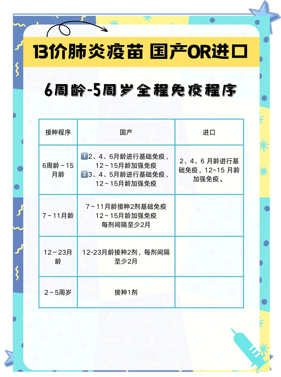 6周龄起即可接种,预防13种高致病血清型,保护效力达93.7%,接种方案:2、4、6月龄基础免疫,12-15月龄加强。